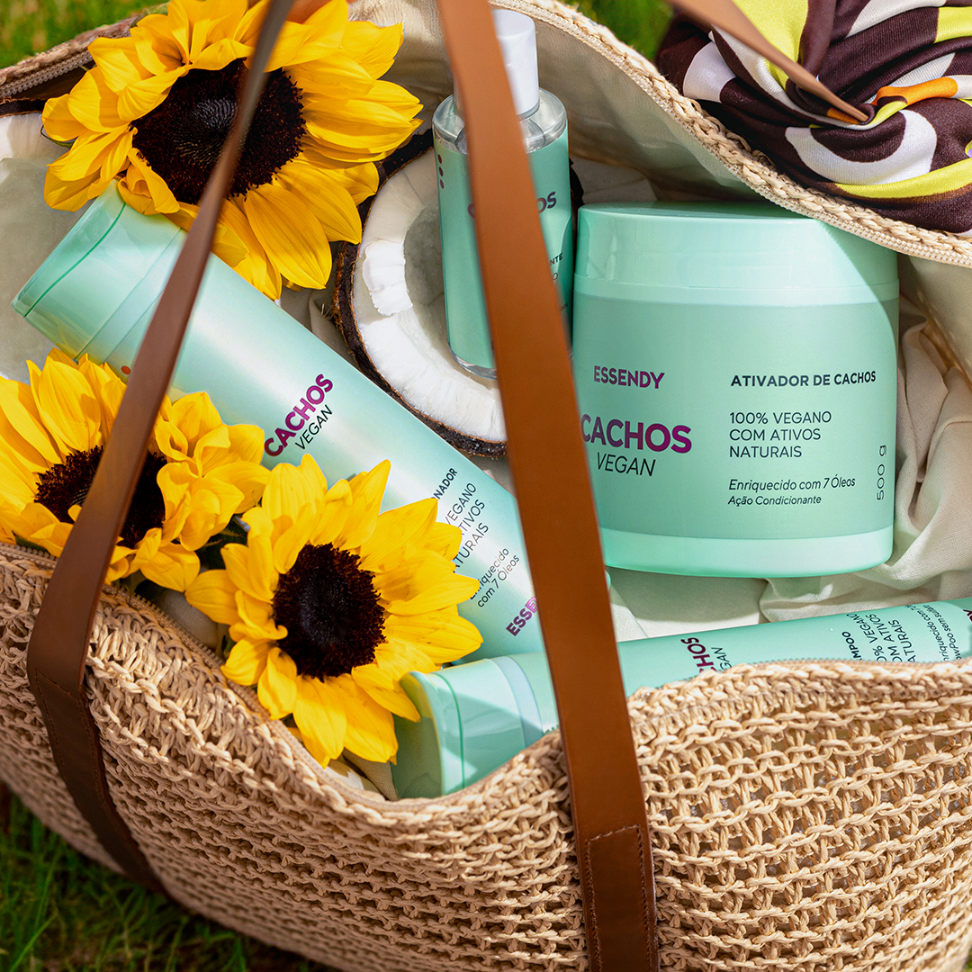 {"type":"root","children":[{"type":"paragraph","children":[{"type":"text","value":"Linha vegana, liberada e rica em 7 óleos vegetais, ideal para cuidar dos cachos com leveza. ","bold":true},{"type":"text","value":"\nA Linha Cachos Vegan da Essendy foi desenvolvida para cuidar dos cabelos cacheados, crespos e ondulados, oferecendo hidratação profunda, definição impecável e nutrição intensa. Com um blend poderoso de 7 óleos naturais e ativos tecnológicos, esse kit garante fios saudáveis, com brilho, movimento e livre de frizz. "}]}]}