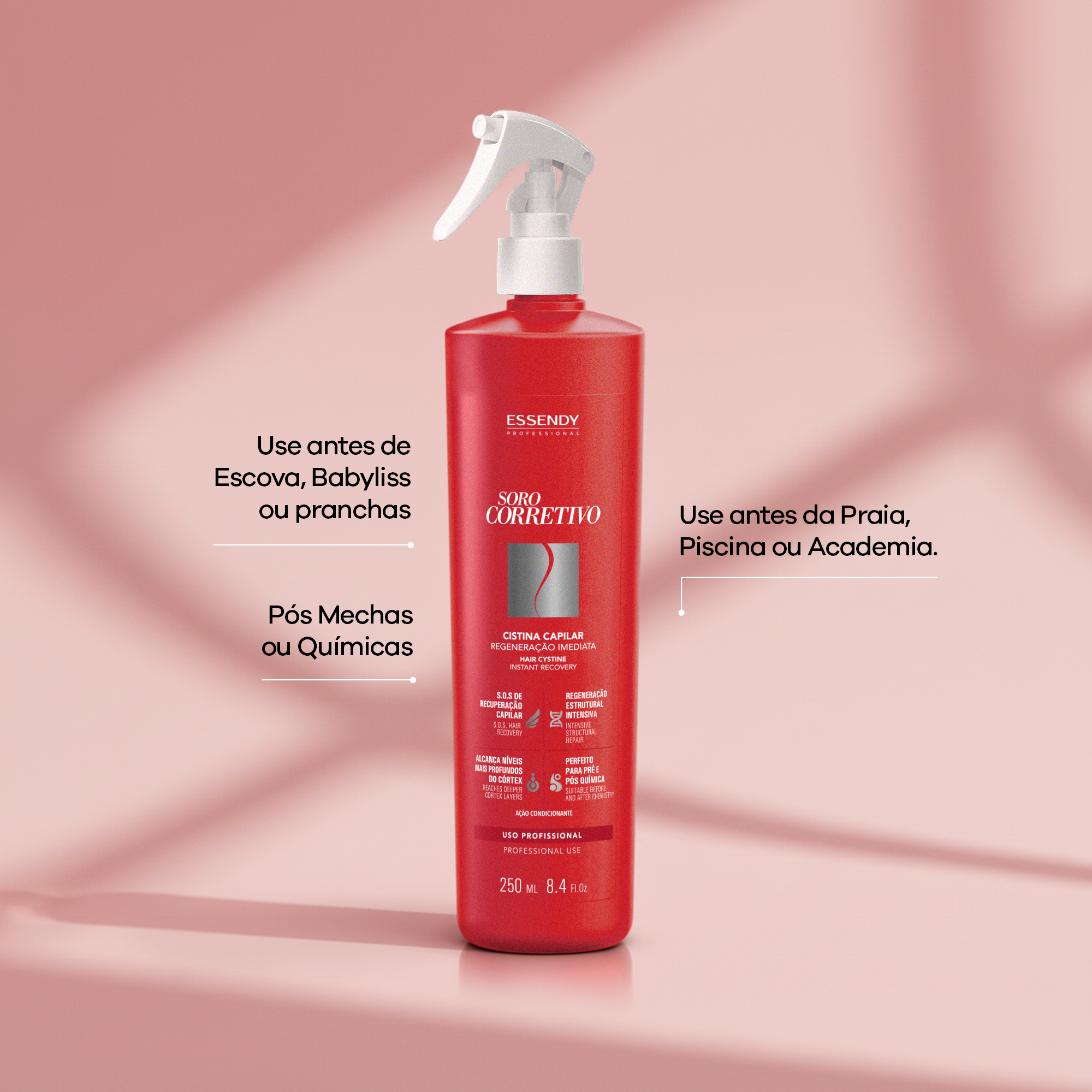 {"type":"root","children":[{"type":"paragraph","children":[{"type":"text","value":"O Soro Corretivo Essendy é um produto multiuso que repara os cabelos instantaneamente e protege contra danos. Com sua fórmula inovadora, que contém partículas de nano cistina, o soro alcança níveis profundos do córtex, aumentando a resistência a quebra e ao emborrachamento. Além disso, tem ação desembaraçante, proteção térmica e solar."}]}]}