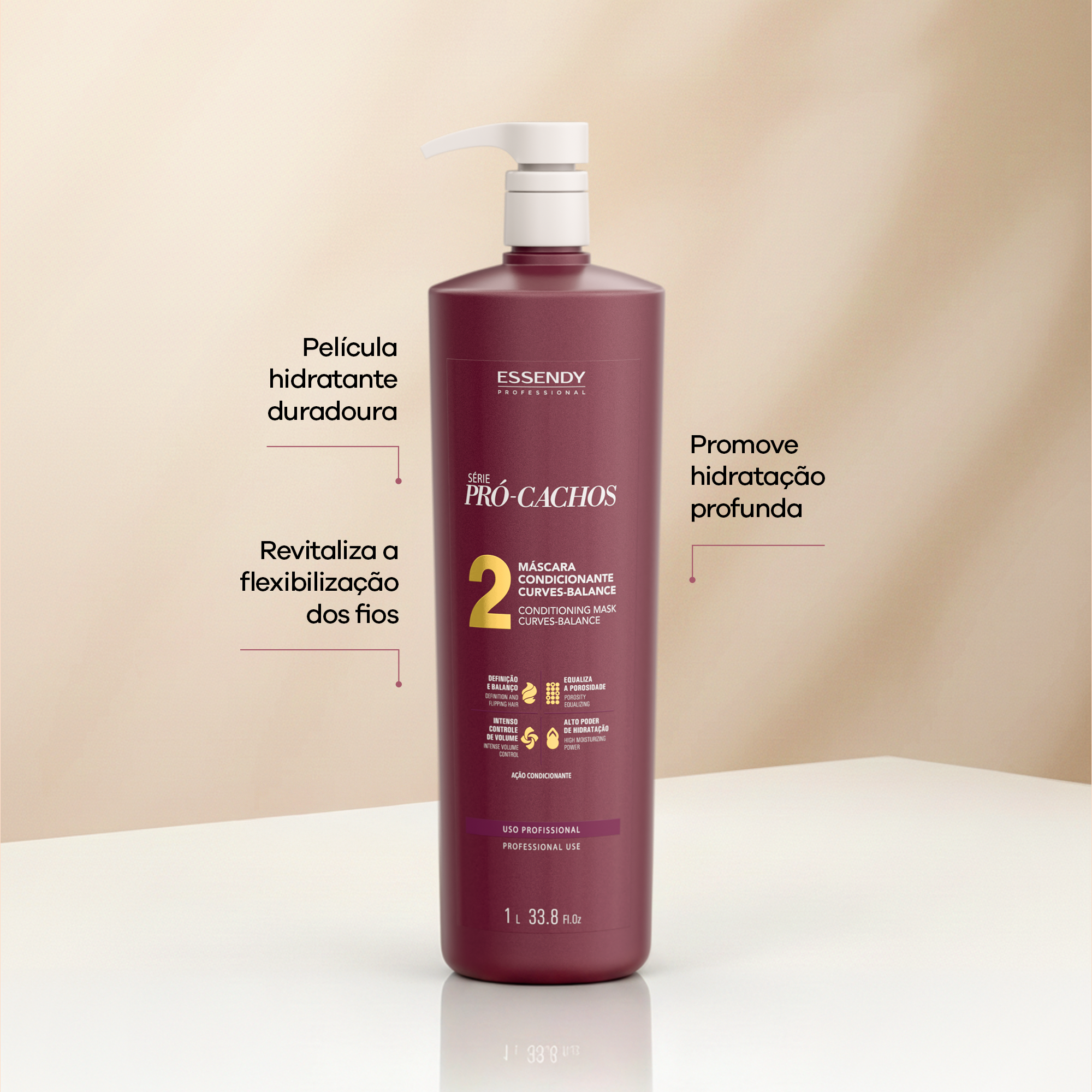 {"type":"root","children":[{"type":"paragraph","children":[{"type":"text","value":"Definição e balanço","bold":true}]},{"type":"paragraph","children":[{"type":"text","value":"A Máscara Capilar para Cachos Essendy é um produto profissional que oferece definição e hidratação prolongada para cabelos cacheados e crespos. Sua fórmula inovadora, com colágeno vegetal e agentes sensoriais, proporciona hidratação profunda e controle do volume com características de memorização dos cachos."}]}]}