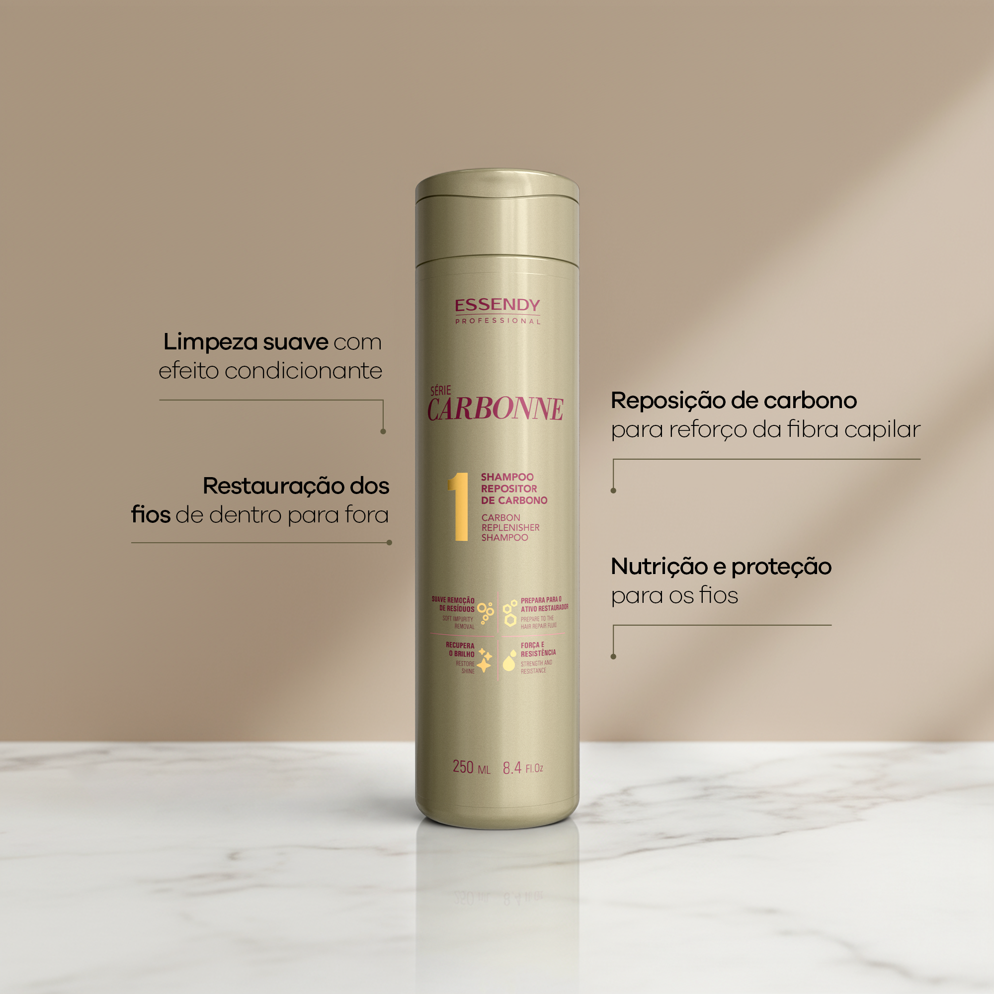 {"type":"root","children":[{"type":"paragraph","children":[{"type":"text","value":"Limpeza nutritiva que devolve força, brilho e vitalidade.\n","bold":true},{"type":"text","value":"O Shampoo Carbonne foi desenvolvido para limpar suavemente enquanto inicia a reposição de carbono nos fios — essencial para restaurar a saúde da fibra capilar. Ideal para cabelos ressecados, danificados por química ou calor, ele remove impurezas sem ressecar, promove condicionamento imediato e prepara os fios para receber o tratamento completo da linha."}]}]}